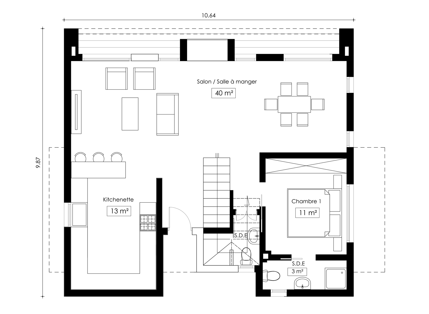 Revêtement extérieur principal : Bardage en épicéa traité peint